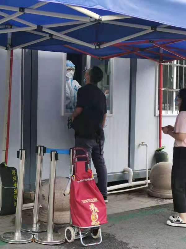 政和的志愿者們在烈日下講解核酸檢測流程和維持秩序