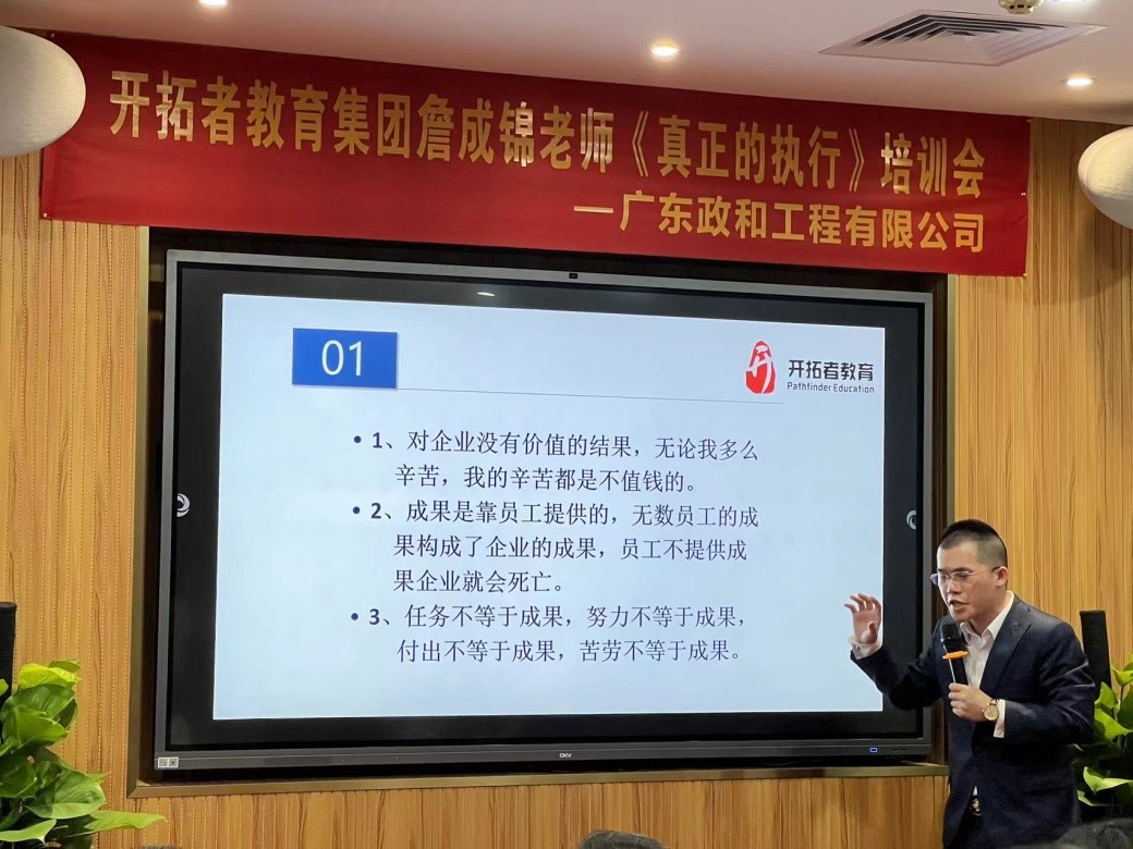 2022年8月5日上午9:00,政和公司邀請了中國企業人才教育領域馳名品牌——開拓者教育集團資深專家詹成錦老師親臨現場,向公司管理層和部分骨干員工現場傳授《真正的執行》。