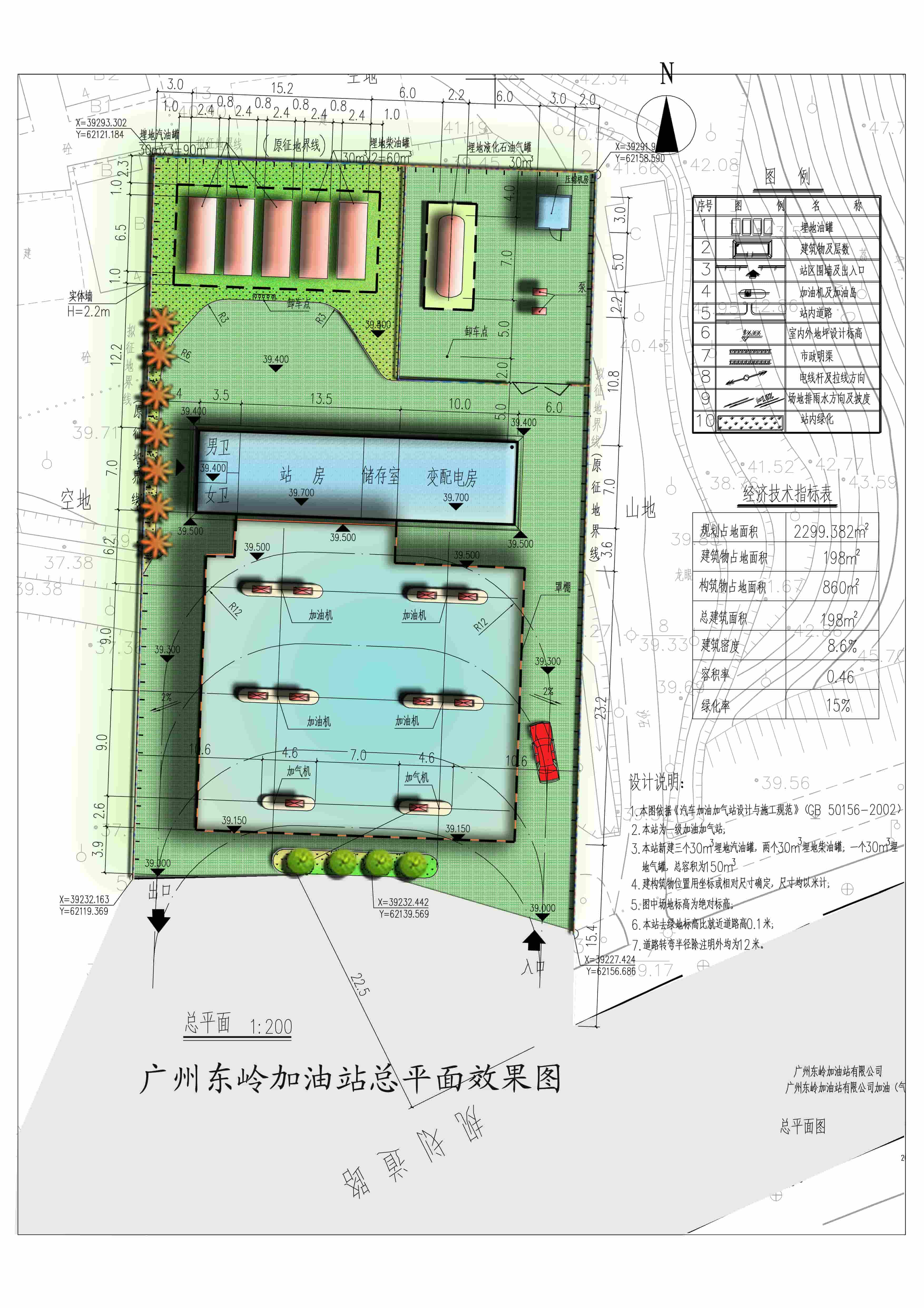 二級加油站(4個30立方米油罐),6臺4槍加油機