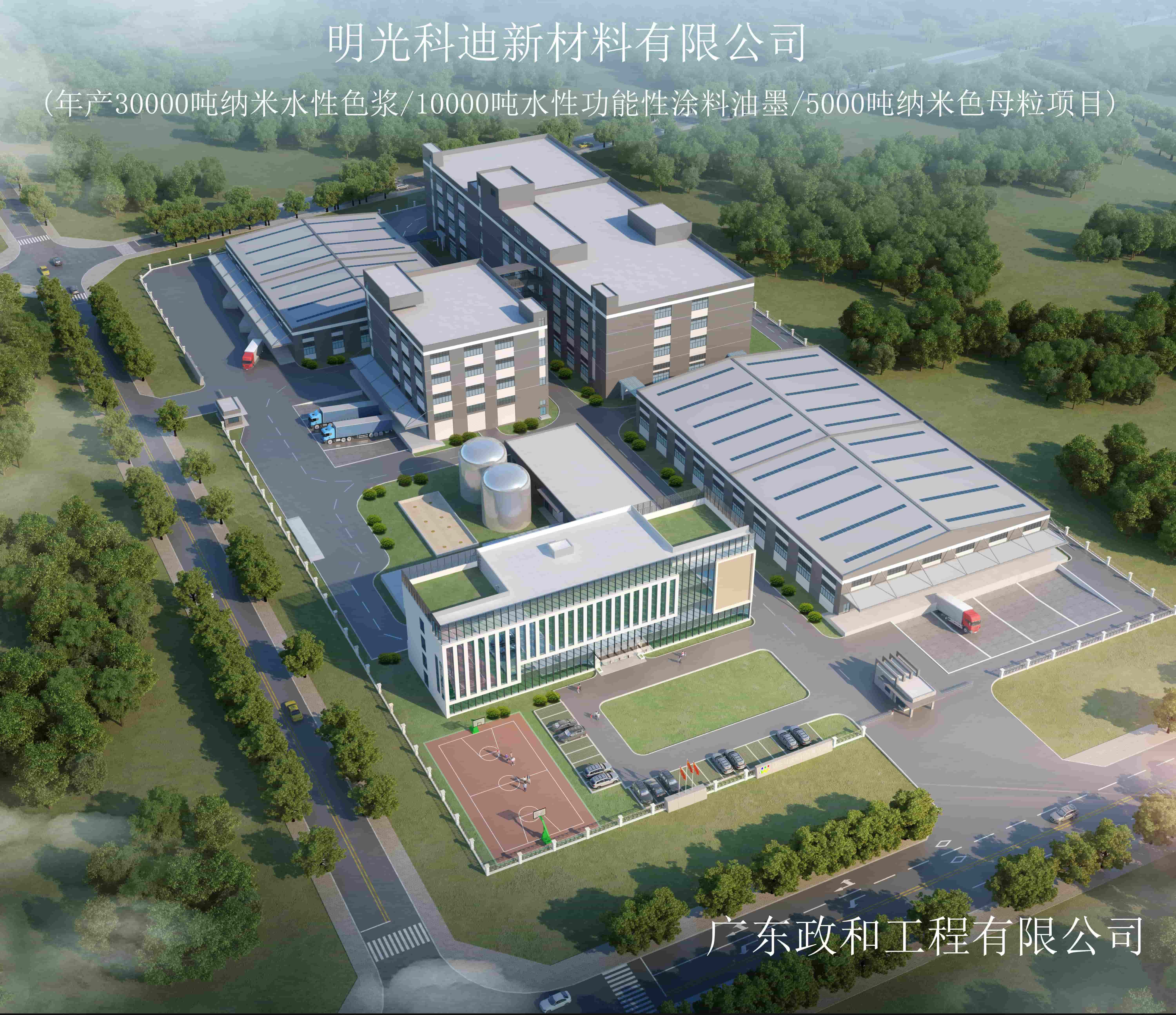 項目總占地面積約為44419.62㎡、總建構筑面積約為37000㎡,年產30000噸納米色漿、5000噸色母粒、10000噸水性功能性涂料油墨
