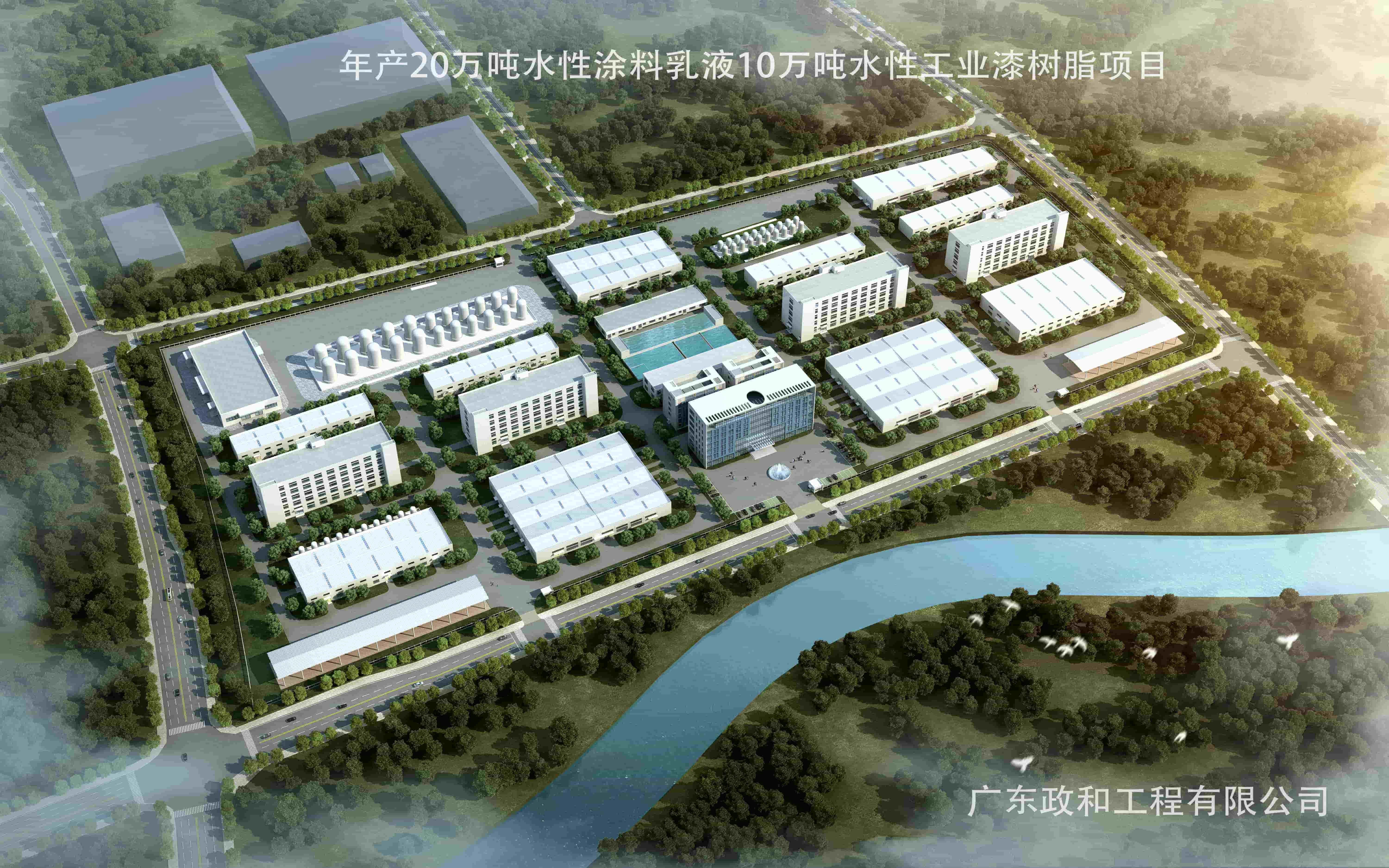 項目總占地面積約為269畝,一期總建筑面積約為35000㎡,年產10萬噸乳液;二期規劃總建筑面積約為33500㎡,年產10萬噸乳液及10萬噸水性樹脂